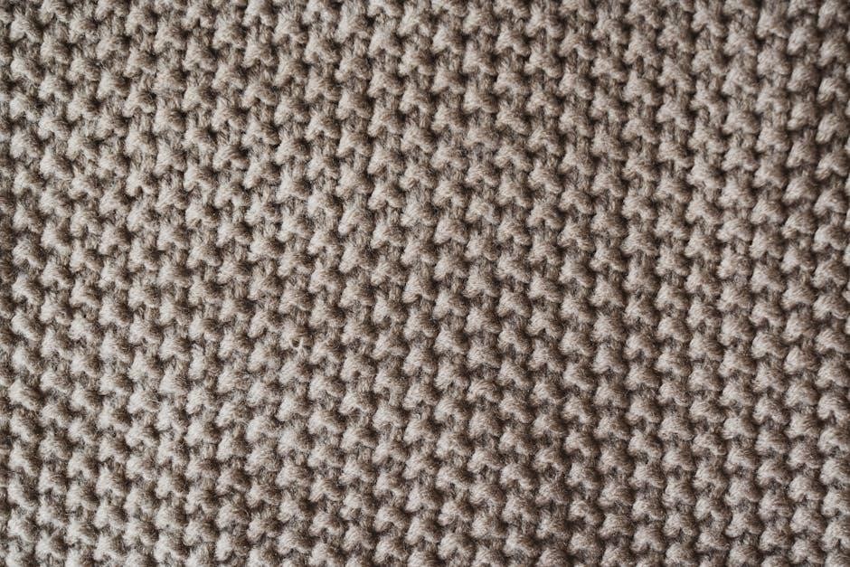 Basketweave stitch, as detailed in numerous loom knit stitch PDFs, creates a fabric resembling woven baskets, offering a charming textured appearance. This stitch is achieved by working blocks of knit and purl stitches, typically in a 2×2 or larger pattern, creating a visually appealing grid-like effect.