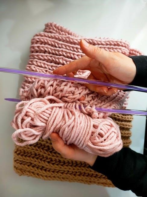 While slightly more challenging than the knit stitch, PDF guides with clear visuals make learning manageable; Practicing both knit and purl stitches allows for creating stockinette stitch (knit on one side, purl on the other), a classic fabric in knitting.