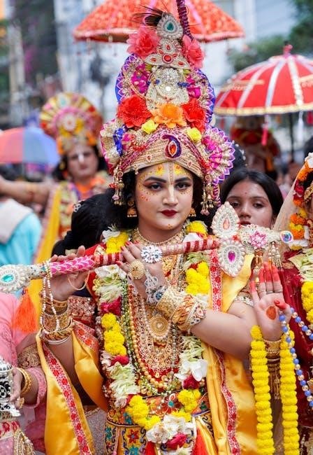 Vishnu Sahasranamam is deeply embedded in Hindu scriptures, particularly the Mahabharata, where it is narrated by Bhishma to Yudhishthira. It is considered one of the most sacred stotras, extolling the virtues of Lord Vishnu. The text is integral to Hindu traditions, often recited during worship, rituals, and spiritual practices. Its inclusion in daily puja and ceremonies underscores its significance in devotion and spiritual growth. The thousand names of Vishnu encapsulate His divine attributes, making it a cornerstone of Vaishnavite worship. Its influence extends beyond text, shaping rituals, festivals, and cultural practices. The Hindi PDF version has made it accessible to a broader audience, ensuring its timeless relevance in modern Hindu spirituality and traditions.